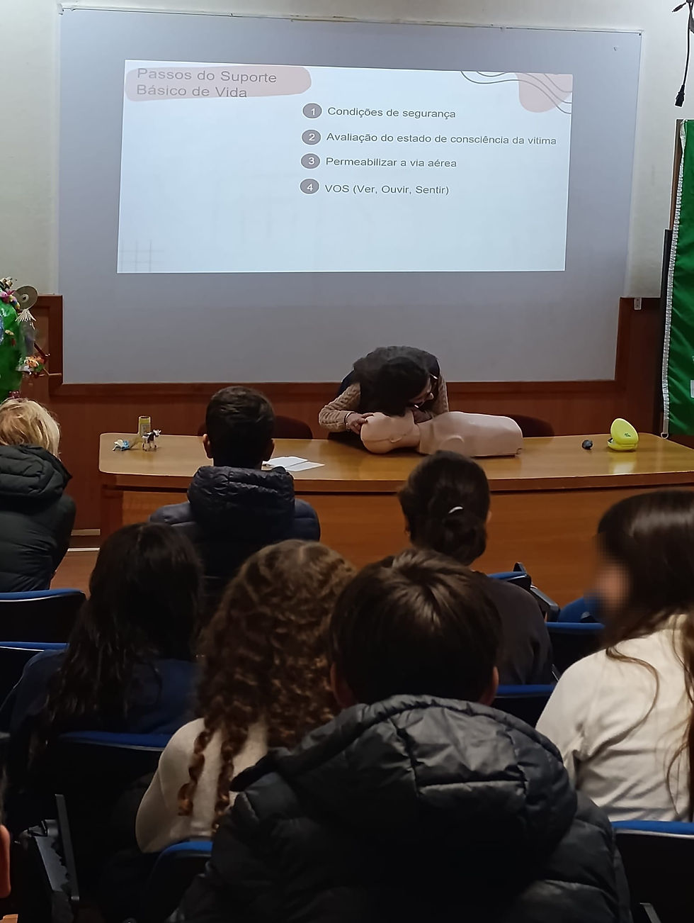 Na segunda-feira, dia 9, os alunos do Curso Técnico de Proteção Civil da Escola Secundária de Pinheiro e Rosa deslocaram-se à EB Dr. José de Jesus Neves Júnior para dinamizar sessões de Suporte Básico de Vida, nas quais participaram 152 alunos.